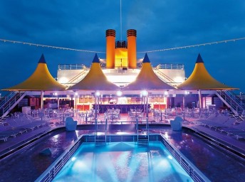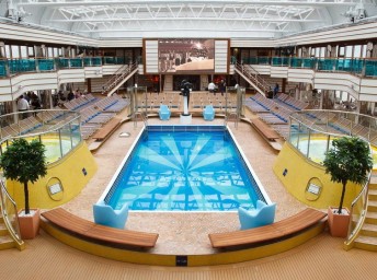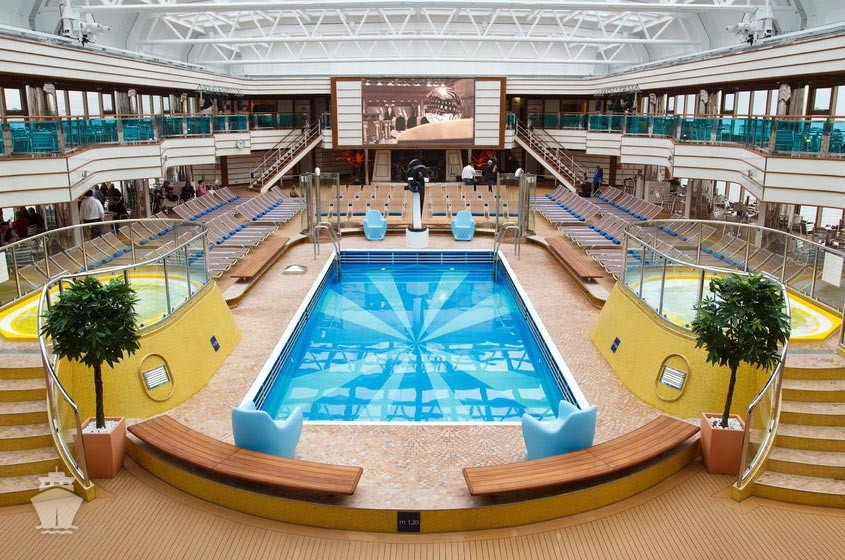 - otevřený bazén na horní palubě, 1 bazén s posuvnou prosklenou střechou, bazén pro děti
