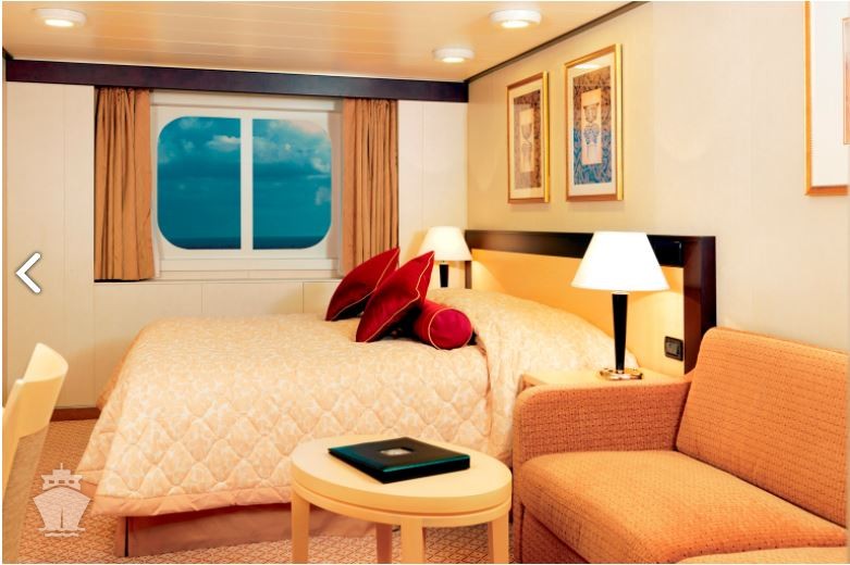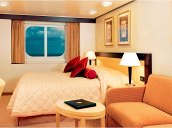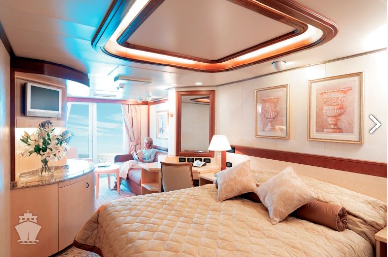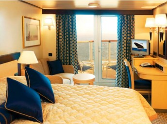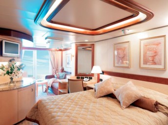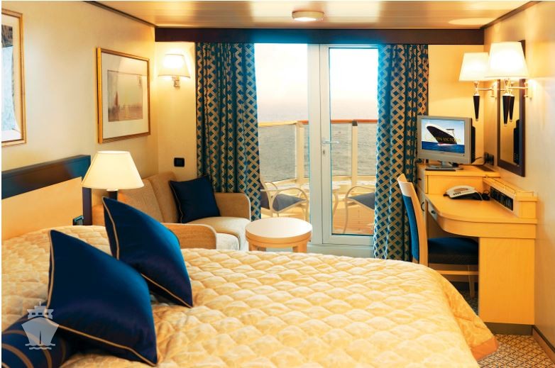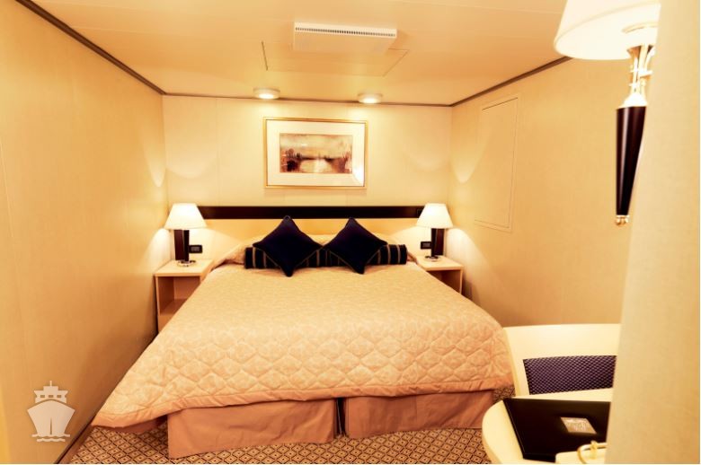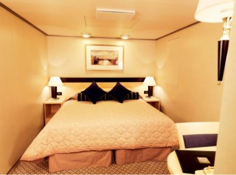 Velkoryse prostorná kajuta je vybavena stolem, posezením a velkou postelí a navíc prostorným balkonem se stolem a židlemi, kde můžete relaxovat na mořském vzduchu.