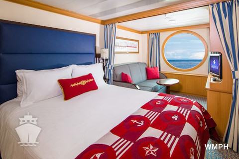 Zařízení kajut: dvoulůžková queen postel (matrace Posturepedic Sealy, ložní prádlo z egyptské bavlny), skříň, koupelna se sprchou, vanou a WC, vysoušeč vlasů, kosmetika H20 + spa (šampon, kondicionér a tělové máslo), obývací část se sofa a stolkem, oddělitelná závěsem, 22 palcová plochá Tv, bezpečnostní schránka, telefon s přímou linkou, zrcadlo, regulovatelná klimatizace.