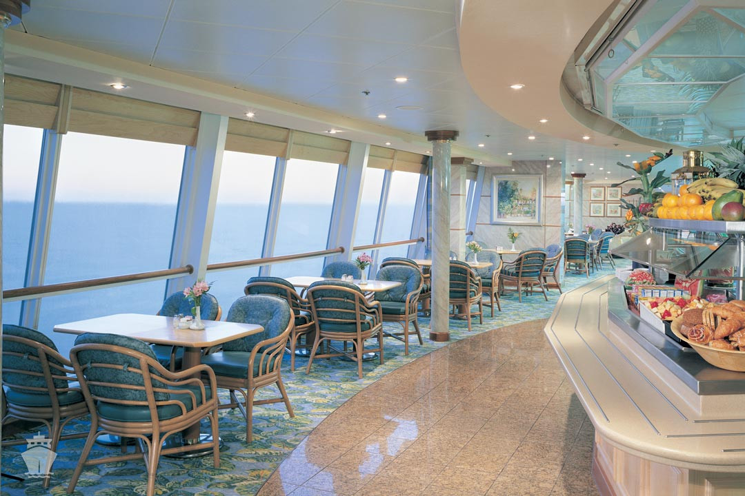 • Spinnaker Lounge – multifunkční salonek s výhledem na moře, ideální pro denní relax i noční tanec.