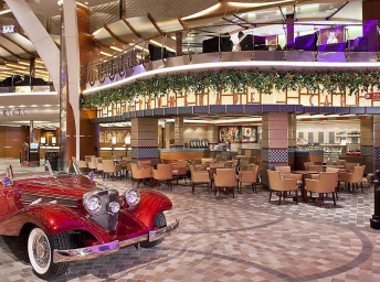 V ceně plavby je nadstandardní plná penze v hlavní restauraci - Main Dining Room, velkolepé bufety ve Windjammer Marketplace, občerstvení v Park Café, pizza a některé nápoje (voda, limonáda, ledový čaj z automatů v bufetových restauracích).