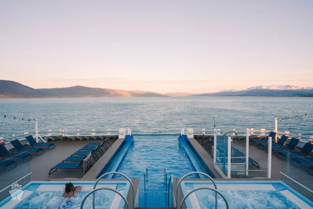 Suite: Aft-facing suites na zádi lodě s vlastními vířivkami