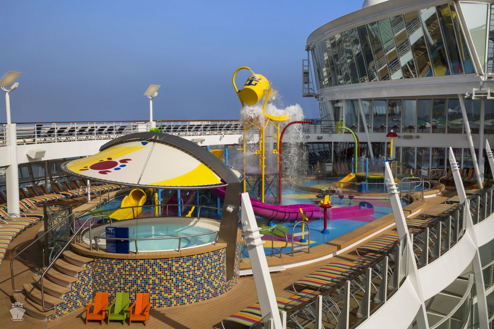 - 3 vodní tobogany ve výši 3 palub
