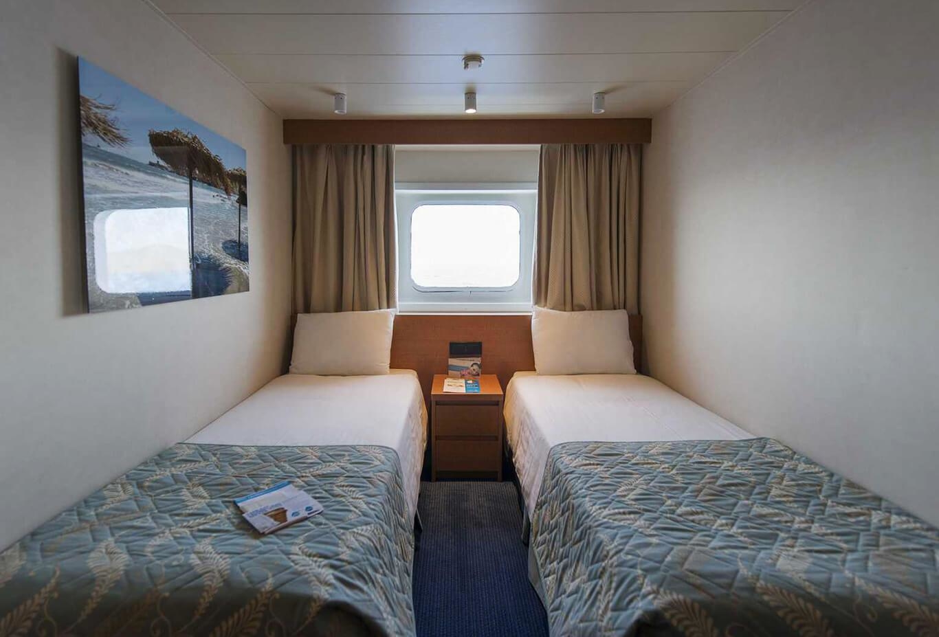Všechny kajuty mají koupelnu se sprchou, vysoušeč vlasů, telefon, TV.