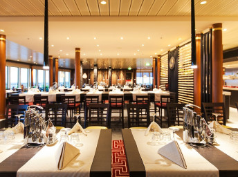 Ve všech kajutách se nachází koupelna se sprchou, manželská postel s možnosti oddělit lůžka, dostatek úložných prostor, trezor, vysoušeč vlasů, telefon, televizor, regulovatelná klimatizace.