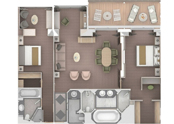 | O2 - Owner's Suite 2 119 - 129 m² (včetně velké verandy). 2 ložnice, obývací část, jídelní část. | 1 910 642 Kč 955 321 Kč za osobu |