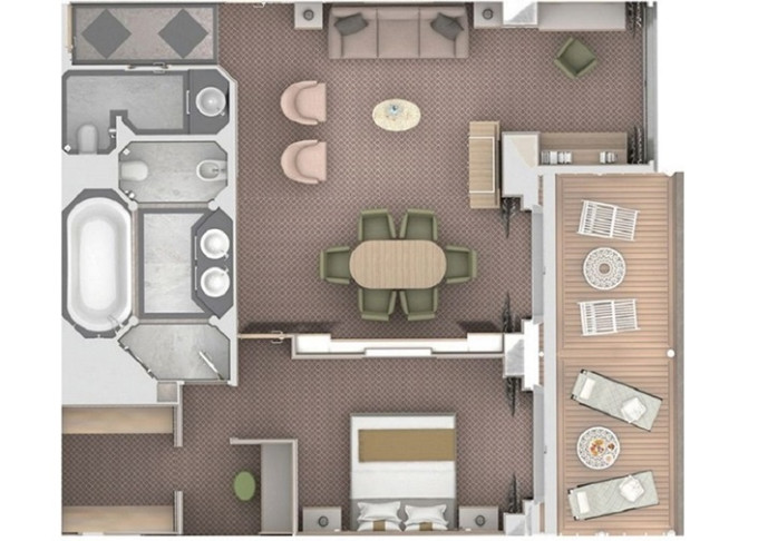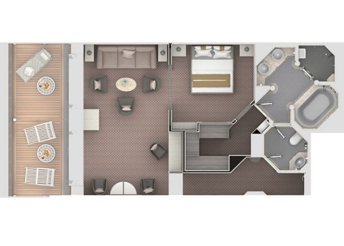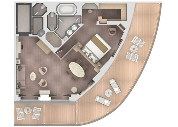 | SV - Superior Veranda Suite 36 m² / balkon 6 m². Vyšší paluby. Ložnice s obývací částí. | 580 195 Kč 580 195 Kč za osobu |