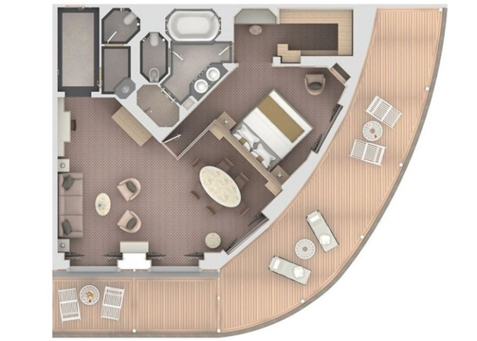 | G1 - Grand Suite 1 146 m² (včetně 2 balkonov). Ložnice, obývací časť, jídelní část. | 1 290 433 Kč 1 290 433 Kč za osobu | ||