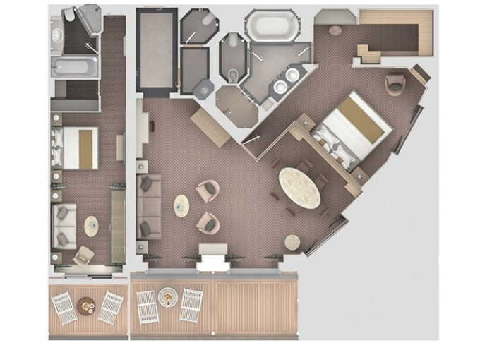 | R2 - Royal Suite 2 142 m² (včetně balkona). 2 ložnice, obývací a jídelní část. | 1 720 578 Kč 860 289 Kč za osobu |