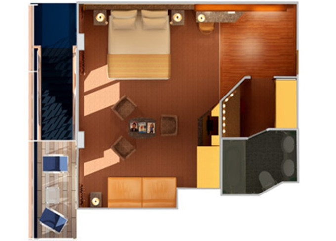 | 8N - Kajuta s větším balkonem Aft-View - výhled dozadu. 17 m² / balkon 5,5 m². Vzadu. | 57 969 Kč 28 985 Kč za osobu |