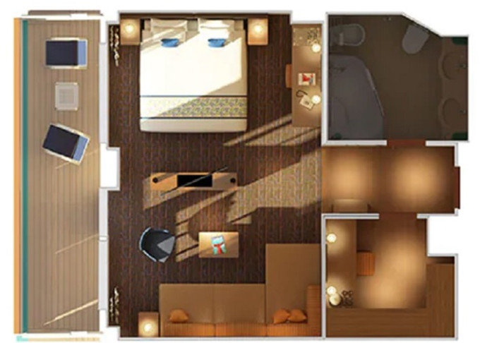 | 6T - Vnější kajuta Cloud 9 Spa 20 m². Neotevíratelné okno. Volný vstup do Cloud 9 Spa a balíček Cloud 9 Spa. | 51 917 Kč 25 959 Kč za osobu |