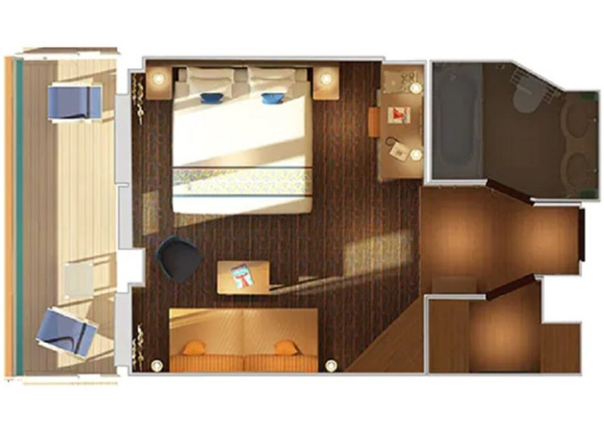 | HI - Kajuta Havana s väčším balkonem Aft Extended 17 m² / balkon 7 m². Vzadu. Tropický styl, vstup do exkluzivní zóny Havana. | 70 874 Kč 35 437 Kč za osobu |