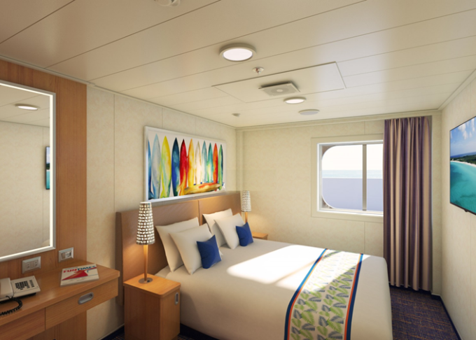 Vybavení ve všech kajutách: koupelna se sprchou, postele a dostatek úložných prostor, TV, telefon, fén, sejf, minibar, individuálně nastavitelná klimatizace, plážové osušky k použití během plavby.