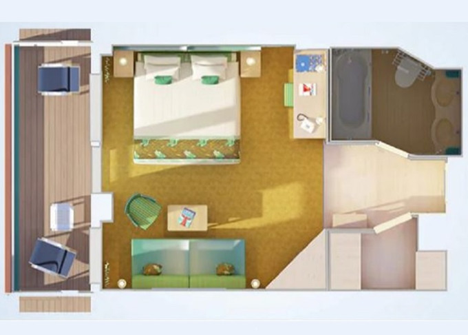 | HE - Kajuta Havana Cabana s patiom 17 m² / vnější patio 10 m². Tropický styl, vstup do exkluzivní zóny Havana. | 80 077 Kč 40 038 Kč za osobu |