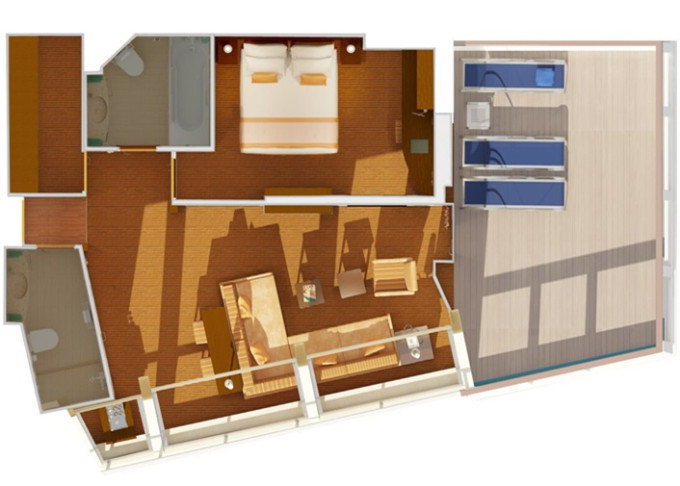 | CS - Captain's Suite 50 m² / balkon 24 m². Výhody Suite. Max 5 osob. | 93 832 Kč 46 916 Kč za osobu |