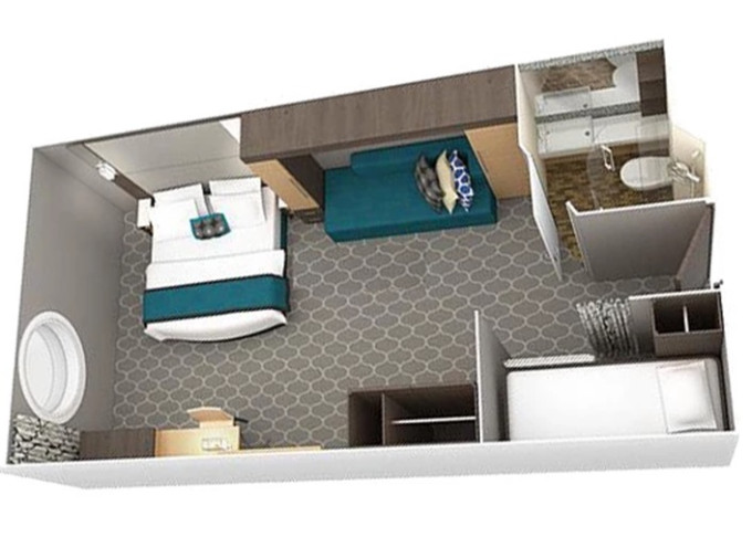 | 2T - Vnitřní kajuta Promenade View / s oknem 18 m². Neotevíratelné okno (výhled na Promenade). 7. paluba. Max 4 osoby. | 45 915 Kč 22 958 Kč za osobu |
