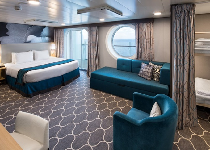 | J4 - Junior Suite s balkonem 26,5 m² / balkon 7,5 m². Výhody Royal Suite Class. 6. až 12. paluba. Max 5 osob. | 140 347 Kč 140 347 Kč za osobu | ||