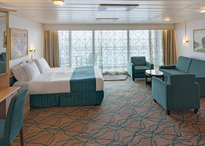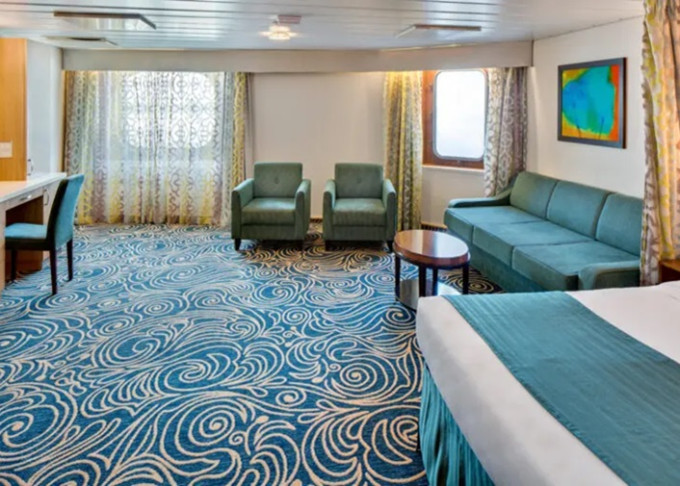 VO - Ocean View Suite (bez balkonu) / 2 ložnice 49 m². Panoramatické neotevíratelné okna. 8. paluba. Max 8 osob. 143 648 Kč 35 912 Kč za osobu