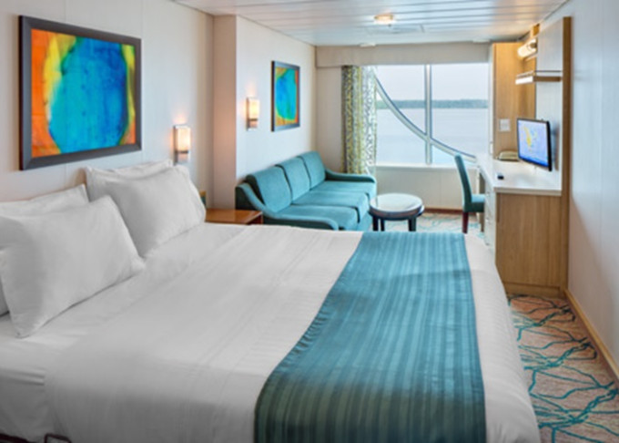 VO - Ocean View Suite (bez balkonu) / 2 ložnice 49 m². Panoramatické neotevíratelné okna. 8. paluba. Max 8 osob. 125 817 Kč 41 939 Kč za osobu
