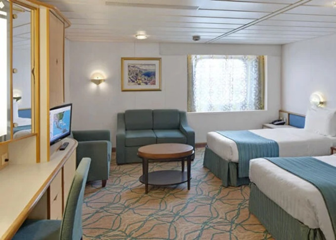 VO - Ocean View Suite (bez balkonu) / 2 ložnice 49 m². Panoramatické neotevíratelné okna. 8. paluba. Max 8 osob. 104 910 Kč 104 910 Kč za osobu