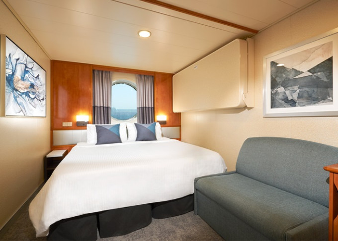 OK - Vnější kajuta / omezený výhled 13-16 m². Neotevíratelné obló s omezeným výhledem. 6. paluba - vpředu. Max 3-4 osoby. 134 245 Kč 67 123 Kč za osobu