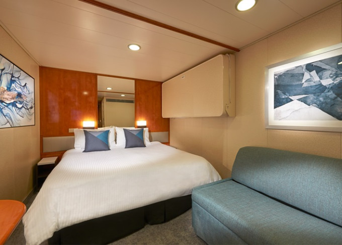 koupelna se sprchou a WC, 2 lůžka, v některých kajutách možnost přistýlek, toaletní stolek, úložné prostory, interaktivní TV, sejf, telefon, vysoušeč vlasů.