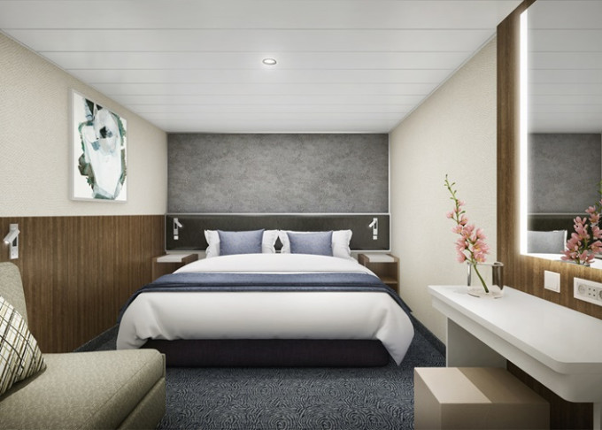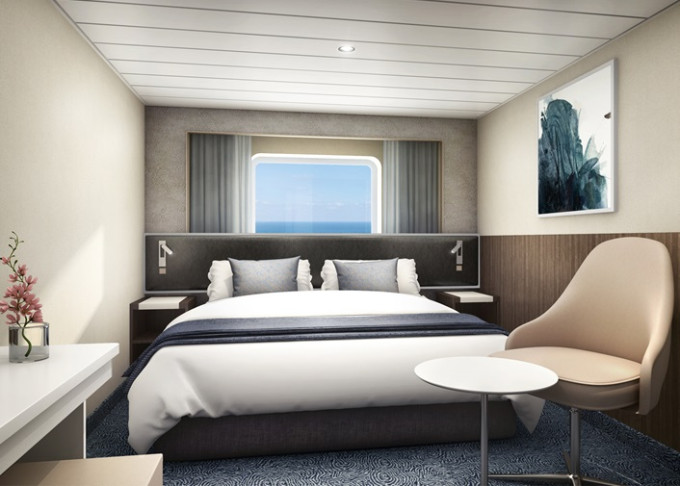 | O3 - Vnější kajuta Deluxe 26 m². Velké neotevíratelné okno. 8. paluba - vpředu. Max 3 osoby. | 158 253 Kč 79 127 Kč za osobu |