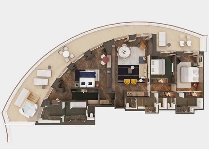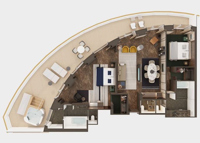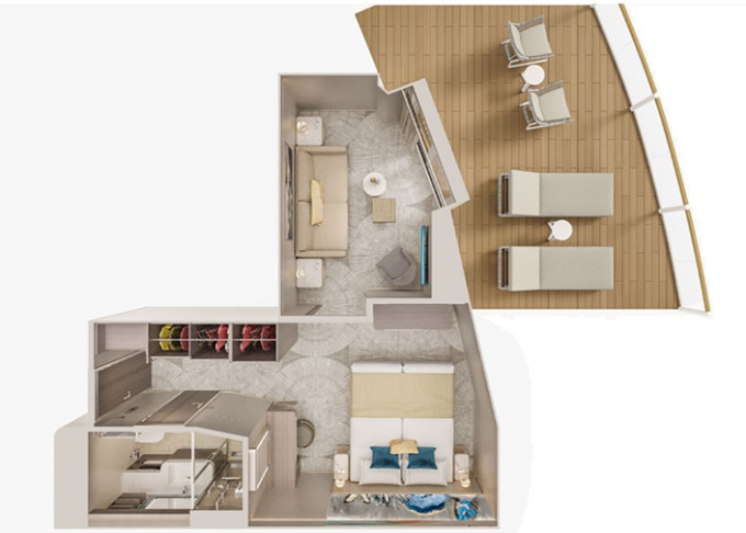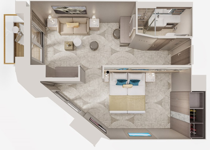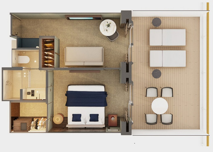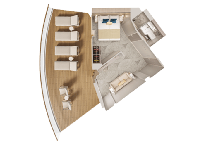 Suite: nejluxusnější a nejprostornější kajuty na lodi; možnost přistýlek