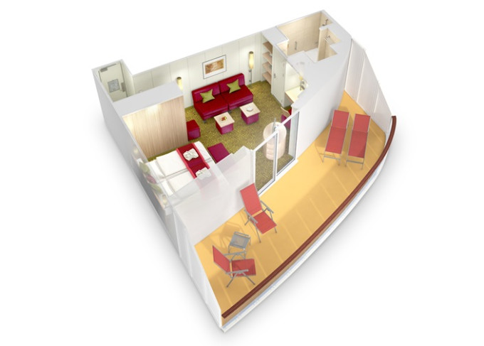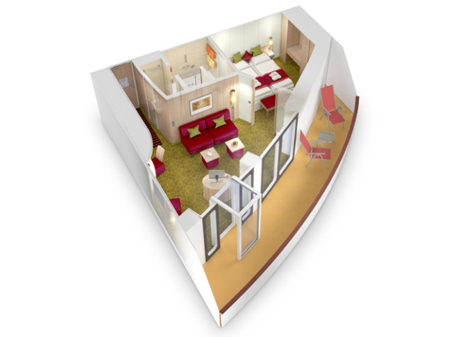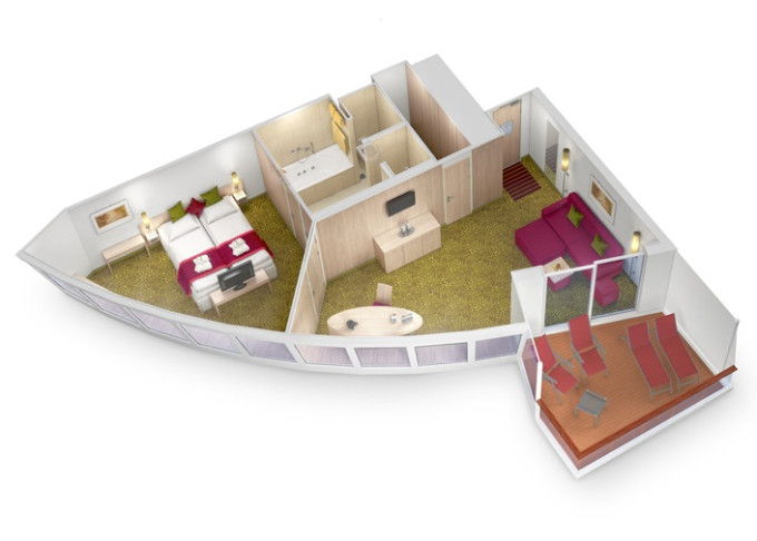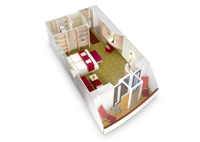 BP - Kajuta s balkonem Panorama PREMIUM 21,5 m² / balkon 4,5 m². Cenový model Premium. Max 3 osoby. 158 803 Kč 79 402 Kč za osobu