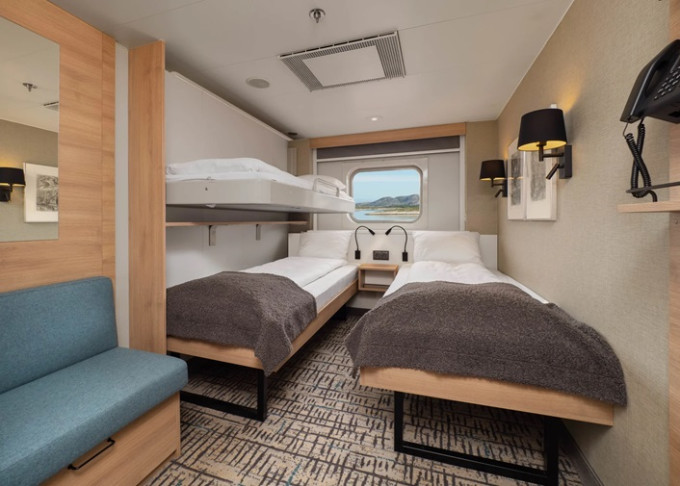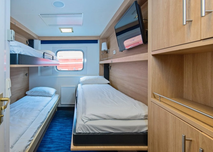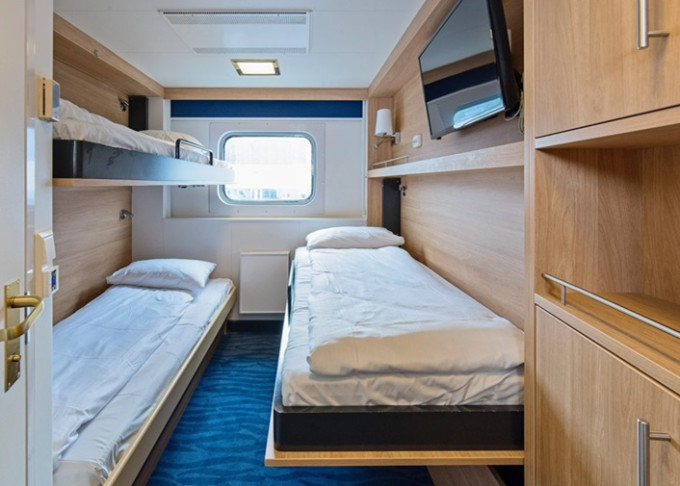 | L3 - Vnější kajuta Polar 8-12 m². Neotevíratelné obló s omezeným výhledem. Max 3 osoby. | 81 377 Kč 40 689 Kč za osobu | ||