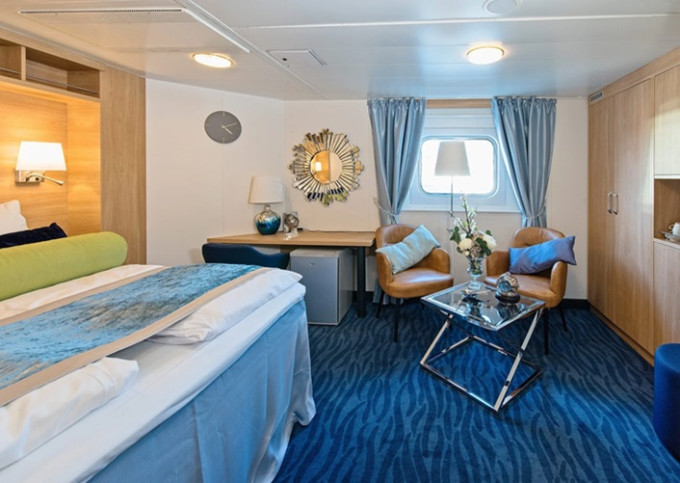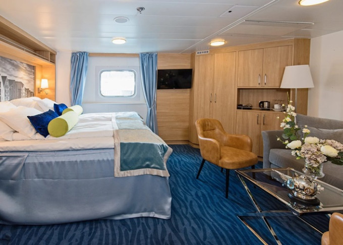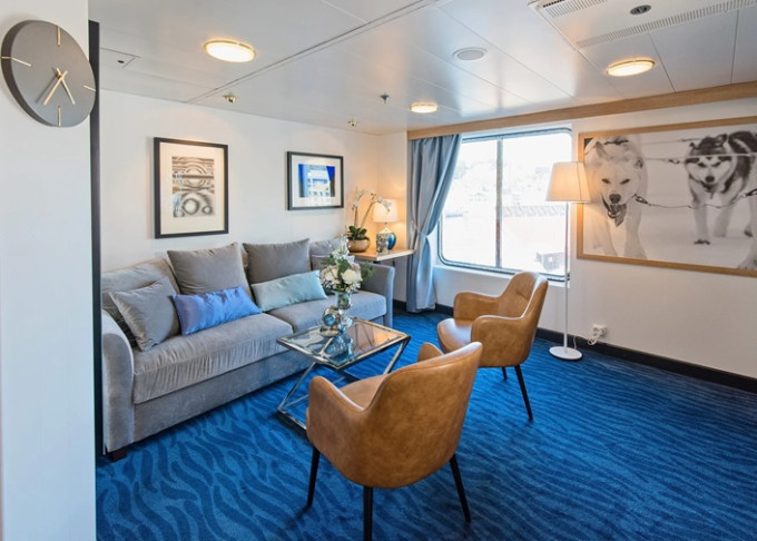 | M4 - Expedition Suite 28-30 m². Panoramatické neotevíratelné okno. Obývací část, Tv, WiFi, varná konvice. Max 4 osoby. | 209 670 Kč 104 835 Kč za osobu | ||