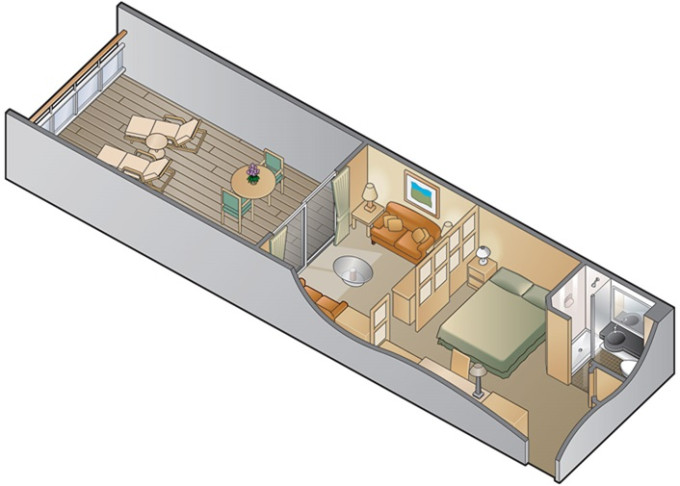 | UC - Kajuta s balkonem Concierge Class Ultra Deluxe 19 m² / balkon 3,5 m². 6. paluba. Max 2 osoby. Výhody Concierge Class. | 205 644 Kč 68 548 Kč za osobu |