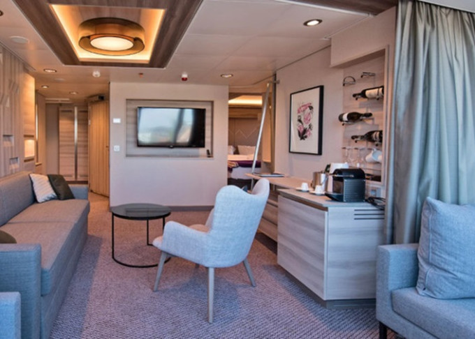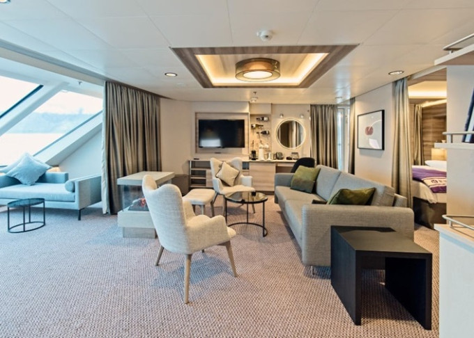 | MF - Corner Expedition Suite 22 m². Panoramatické neotevíratelné okno, TV, minibar, župan, kávovar, varná konvice, káva/čaj. | 608 504 Kč 304 252 Kč za osobu |