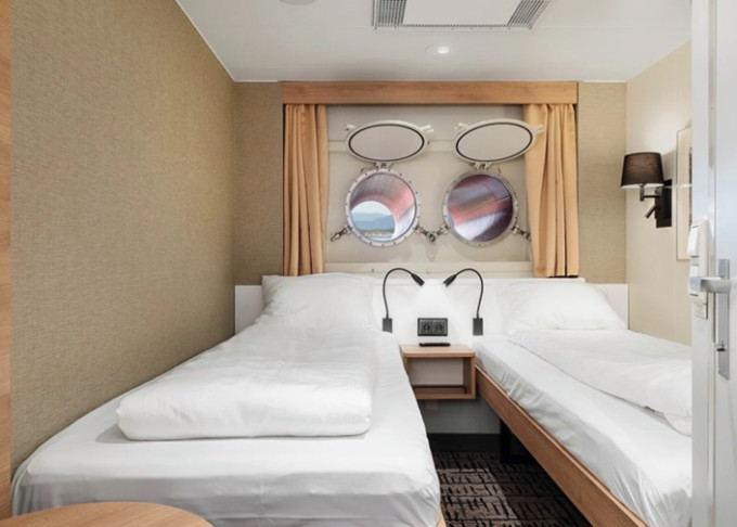| J3 - Vnější kajuta Polar 8-11 m². Neotevíratelné okno s omezeným výhledem. Max 3 osoby. | 66 772 Kč 33 386 Kč za osobu | ||