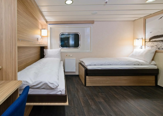 | O3 - Vnější kajuta Polar 8-12 m². Neotevíratelné okno. Tv. Max 3 osoby. | 110 437 Kč 55 219 Kč za osobu | ||