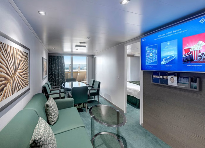| YC4 - Yacht Club Owner's Suite s vířivkou 98 m² + balkon s vířivkou 25 m². Oddělený obývací pokoj a ložnice, šatník, koupelna s vanou. Max 5 osob. 19. paluba. Cenový model MSC Yacht Club. | 416 840 Kč 104 210 Kč za osobu |