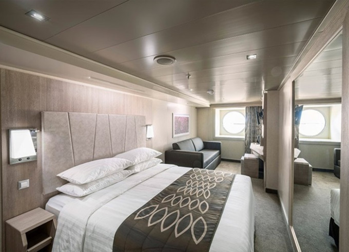 Kajuta oknem: 17 m², kajuta s manželskou postelí (na požádání 2 oddělené postele) a 1-2 vyklápěcí horní lůžka. Klimatizace, koupelna se sprchou a WC, toaletní stolek, skříň, interaktivní TV, sejf, telefon, vysoušeč vlasů, virtuální asistentka ZOE, neotevíratelné okno. Kajuty v kategorii Bella a některé Junior a Deluxe mají omezený výhled.