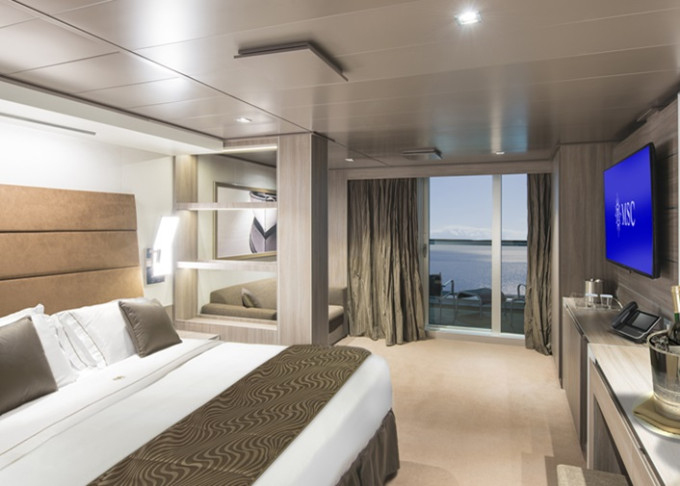 | YC1 - Yacht Club Deluxe Suite od 25 m² + balkon 8 m². Ložnice s oddělenou obývací částí, šatník. Max 5 osob. 16.-19. paluba. Cenový model MSC Yacht Club. | 133 320 Kč 133 320 Kč za osobu |