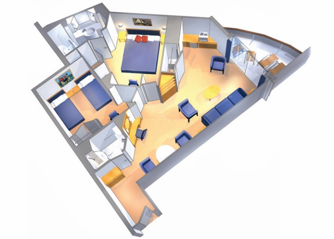 | OS - Owner’s Suite s balkonem 49 m² / balkon 5 m². Výhody Royal Suite Class. 10. paluba. Max 4 osoby. | 254 085 Kč 63 521 Kč za osobu | ||