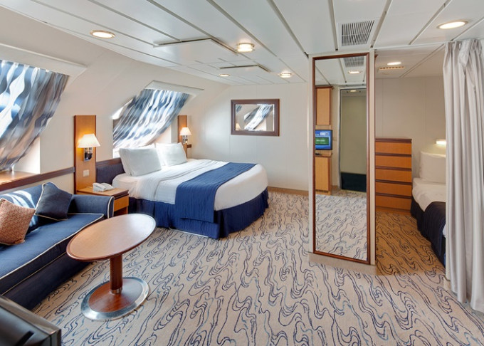 | VT - Ocean View Suite / 2 ložnice (bez balkonu) 55 m². Velké neotevíratelné okna. Výhody Royal Suite Class. 10. paluba. Max 8 osob. | 106 336 Kč 106 336 Kč za osobu |