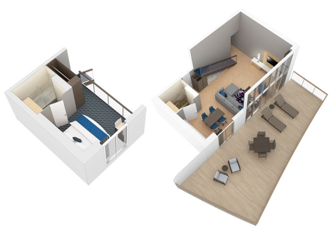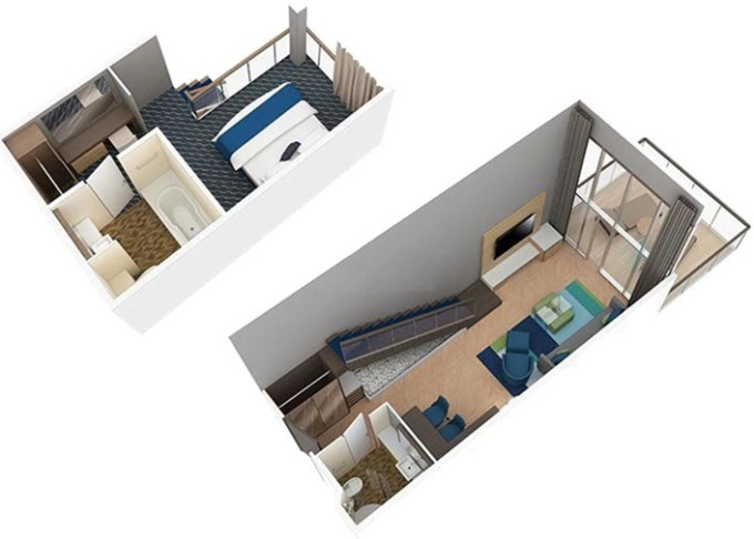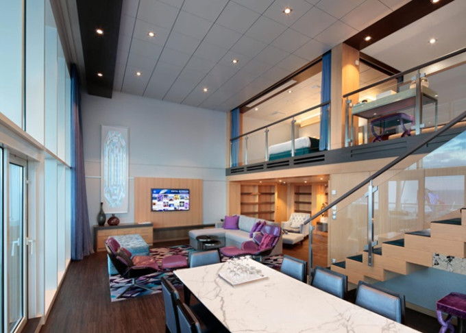 L1 - Crown Loft Suite s balkonem 50 m² / balkon 10 m². 2-podlažní apartmán. Výhody Royal Suite Class. 17. paluba. Max 4 osoby. 205 569 Kč 205 569 Kč za osobu