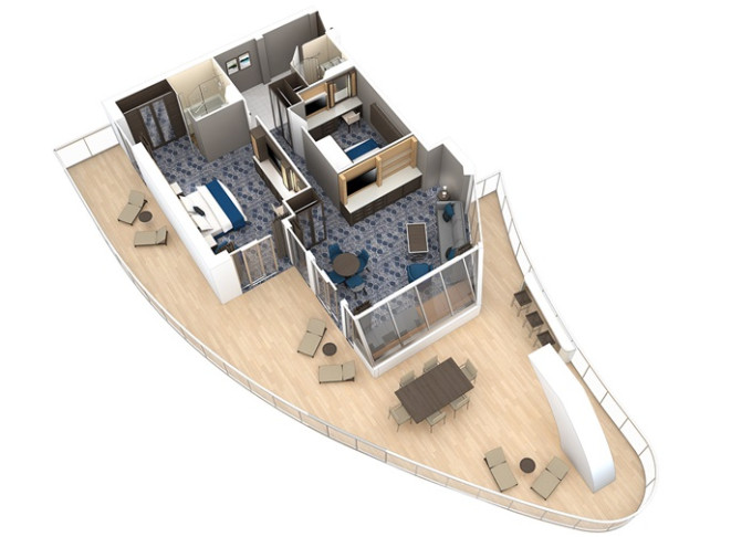A2 - Spacious AquaTheater Suite s balkonem / 2 ložnice 62,5 m² / balkon 56 m². Výhody Royal Suite Class. 9/10. paluba. Max 8 osob. 520 925 Kč 520 925 Kč za osobu