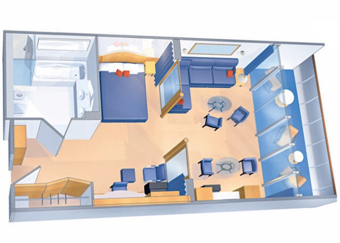| OS - Owner’s Suite s balkonem 48 m² / balkon 11 m². Výhody Royal Suite Class. 8. paluba. Max 4 osoby. | 105 960 Kč 35 320 Kč za osobu | ||