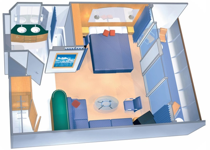 | 1K - Velká vnější kajuta Ultra Spacious 56 m². Neotevíratelné okno. 8. paluba. Max 8 osob. | 45 565 Kč 45 565 Kč za osobu |