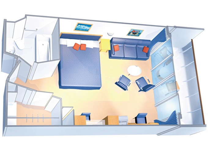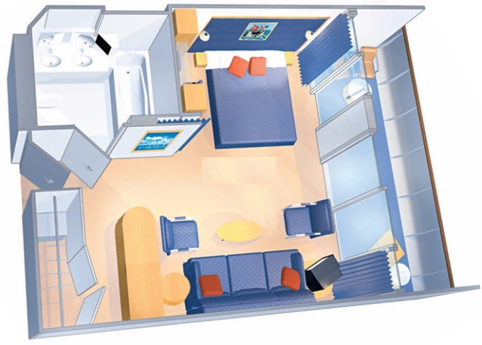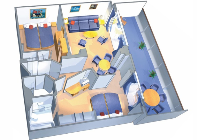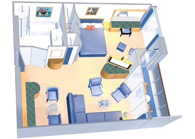 | VP - Ocean View Panoramic Suite (bez balkonu) 38 m². Panoramatické neotevíratelné okna. Výhody Royal Suite Class. 12. paluba. Max 6 osob. | 59 042 Kč 59 042 Kč za osobu |
