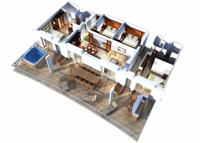 | VS - Villa Suite / 4 ložnice 112 m² / balkon s vířivkou 75 m². Výhody Royal Suite Class. 6. paluba. Max 14 osob. | 137 071 Kč 34 268 Kč za osobu |