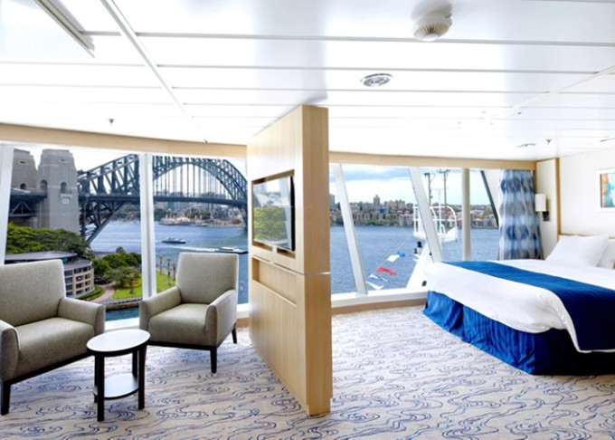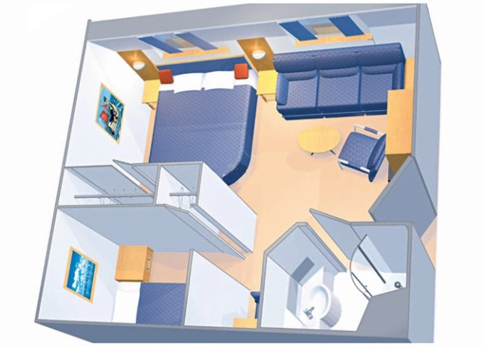 | VP - Ocean View Panoramic Suite (bez balkonu) 37 m². Panoramatické neotevíratelné okna. Výhody Royal Suite Class. 12. paluba. Max 6 osob. | 68 123 Kč 34 061 Kč za osobu |