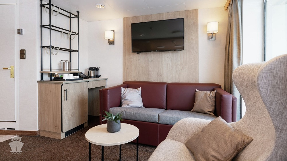 - Při přestavbě v 2020 byly všechny kajuty kompletně renovované a modernizované. Velkorysé použití přírodních skandinávských materiálů, jako vlna, borovice, bříza, dub a žula, do kajut vneslo autentický přírodní pocit.