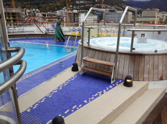 - Vnější kajuty Arctic Superior QJ : 16 - 17 m². Neotvíravé okno s omezeným / žádným výhledem; na 5. a 6. palubě, koupelna se sprchou a WC, Tv. Manželské nebo oddělené postele.