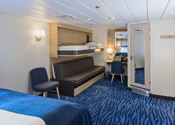 | Q3 - Expedition Mini Suite 16-17 m². Neotevíratelné okno. Tv, kávovar, varná konvice, minibar. Max 3 osoby. | 335 413 Kč 167 706 Kč za osobu | ||